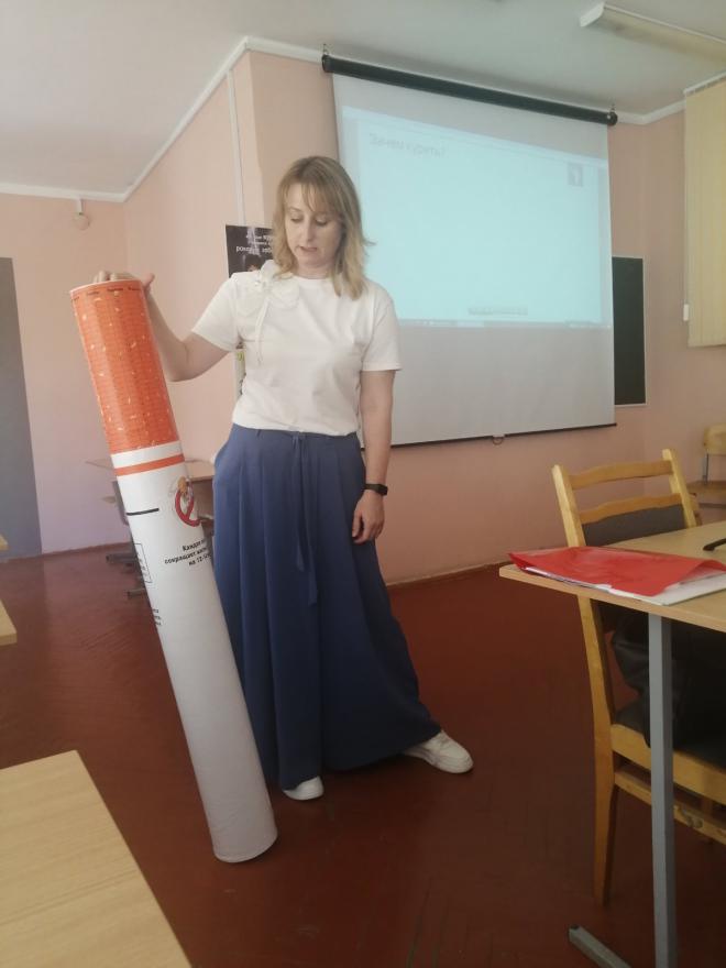 5 июня 2024 года в рамках деятельности профилактического проекта «Мой стиль жизни сегодня – Моё здоровье и успех завтра!» было проведено психопросветительское мероприятие «Дымные иллюзии» – антиникотиновая платформа. В акции приняли участие студенты факультета психологии и педагогики специальностей «Психология» и «Социальная работа». Занятие для студентов провели врач по медицинской профилактике Гомельского областного центра гигиены, эпидемиологии и общественного здоровья Светлана Загорцева и координатор программы помощи бросающим курить ДЫШИТЕ СВОБОДНО благотворительного фонда «Новый старт» Катерина Ходосовская.
