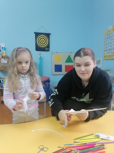 Так же, дети сами пытались вырезать детальки, что способствовало развитию мелкой моторики. В случае, когда у них не получалось, они не стеснялись просить помощи.